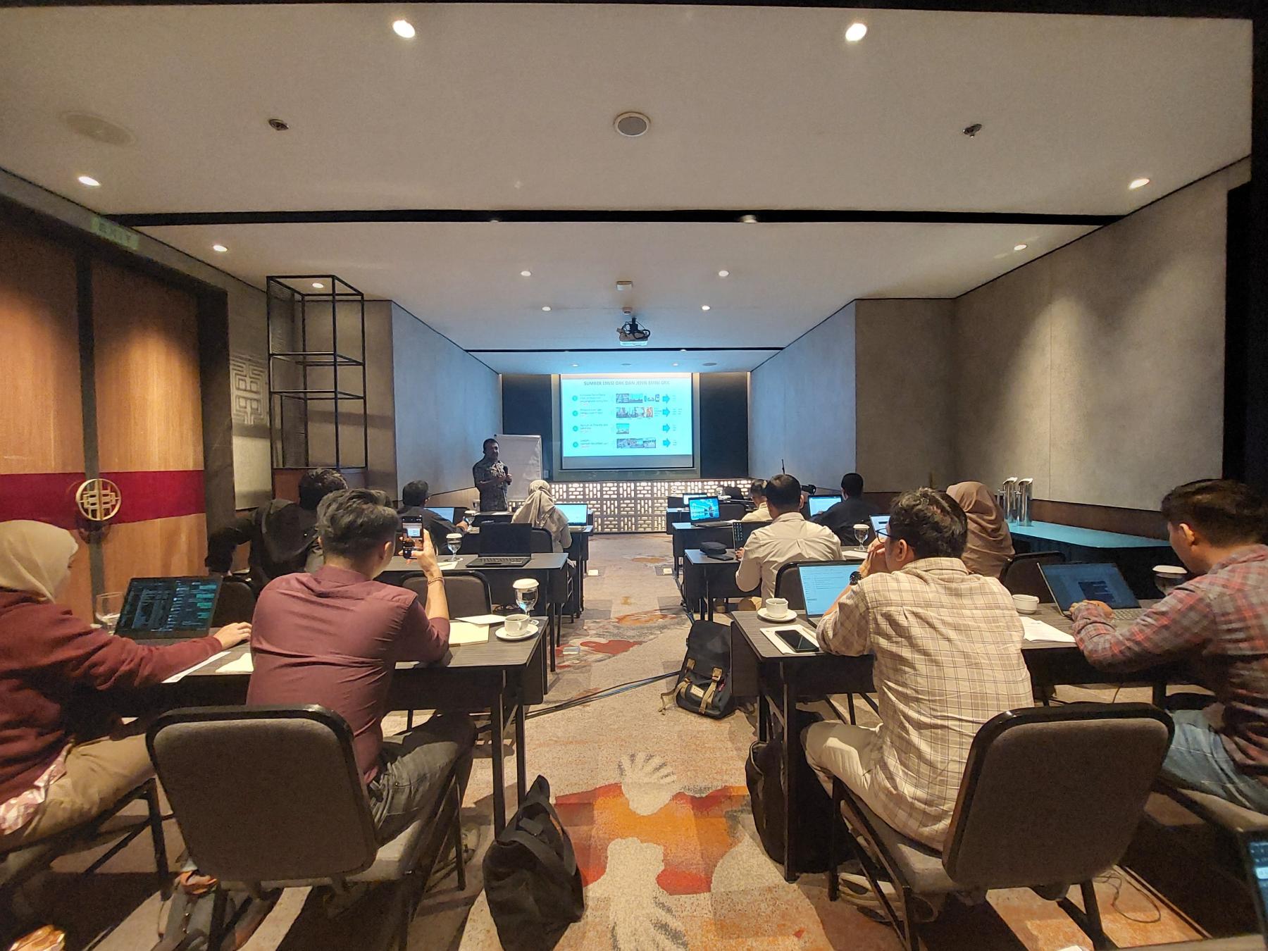 This activity was held for three days, from 5 to 7 July 2023. A total of 23 participants took part in the ToT event, 8 of whom were women. The activity participants came from the Directorate of Energy Conservation, Ministry of Energy and Mineral Resources; Director of Greenhouse Gas Inventory and MPV, KLHK; and Professional Certification Institute (LSP). In general, there are three main ToT agendas, namely, learning activities in classrooms, field visits, and the practice of calculating Green House Gases (GHG) emissions inventory and mitigation.